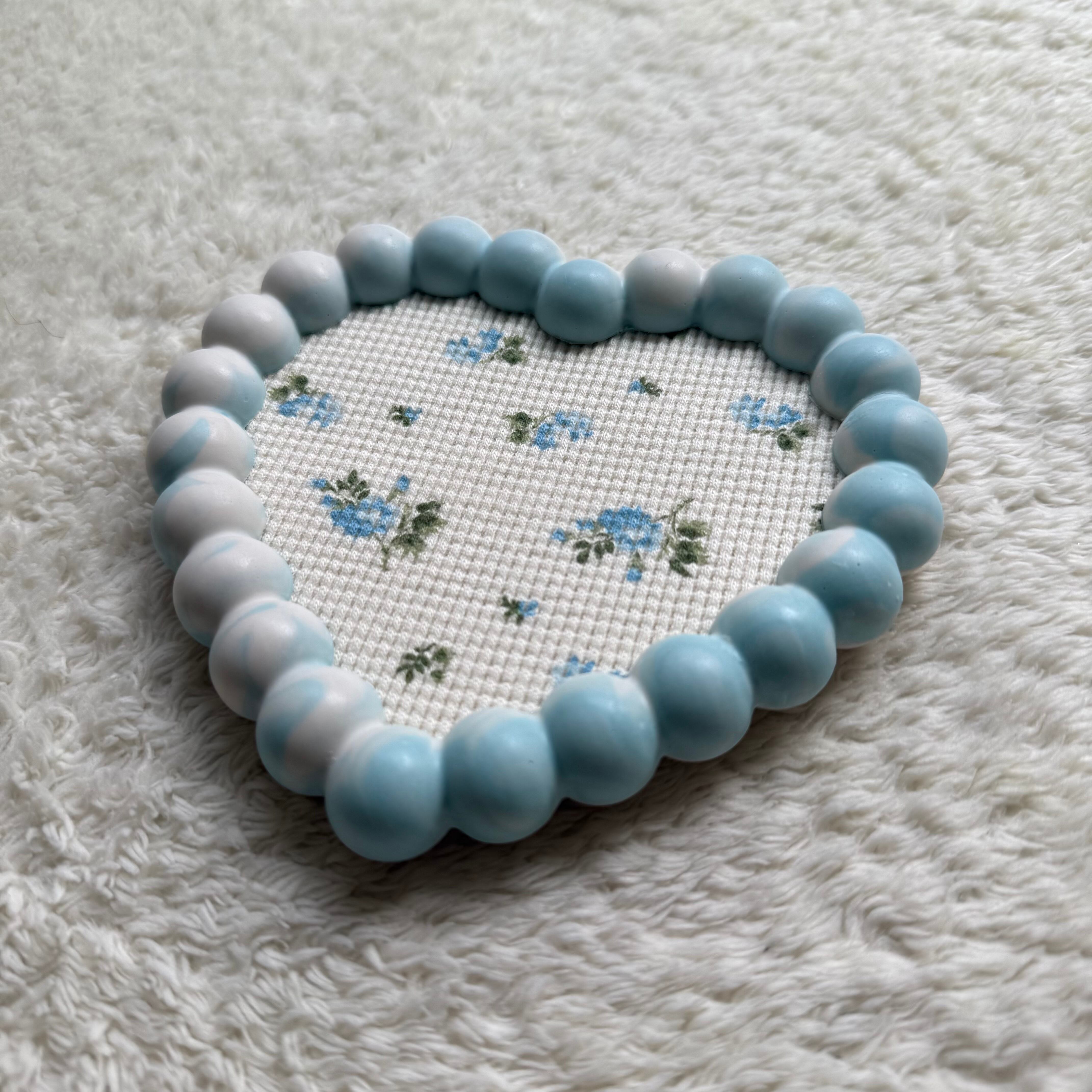 もこもこハートトレイ(ブルー×ホワイト)【D2】