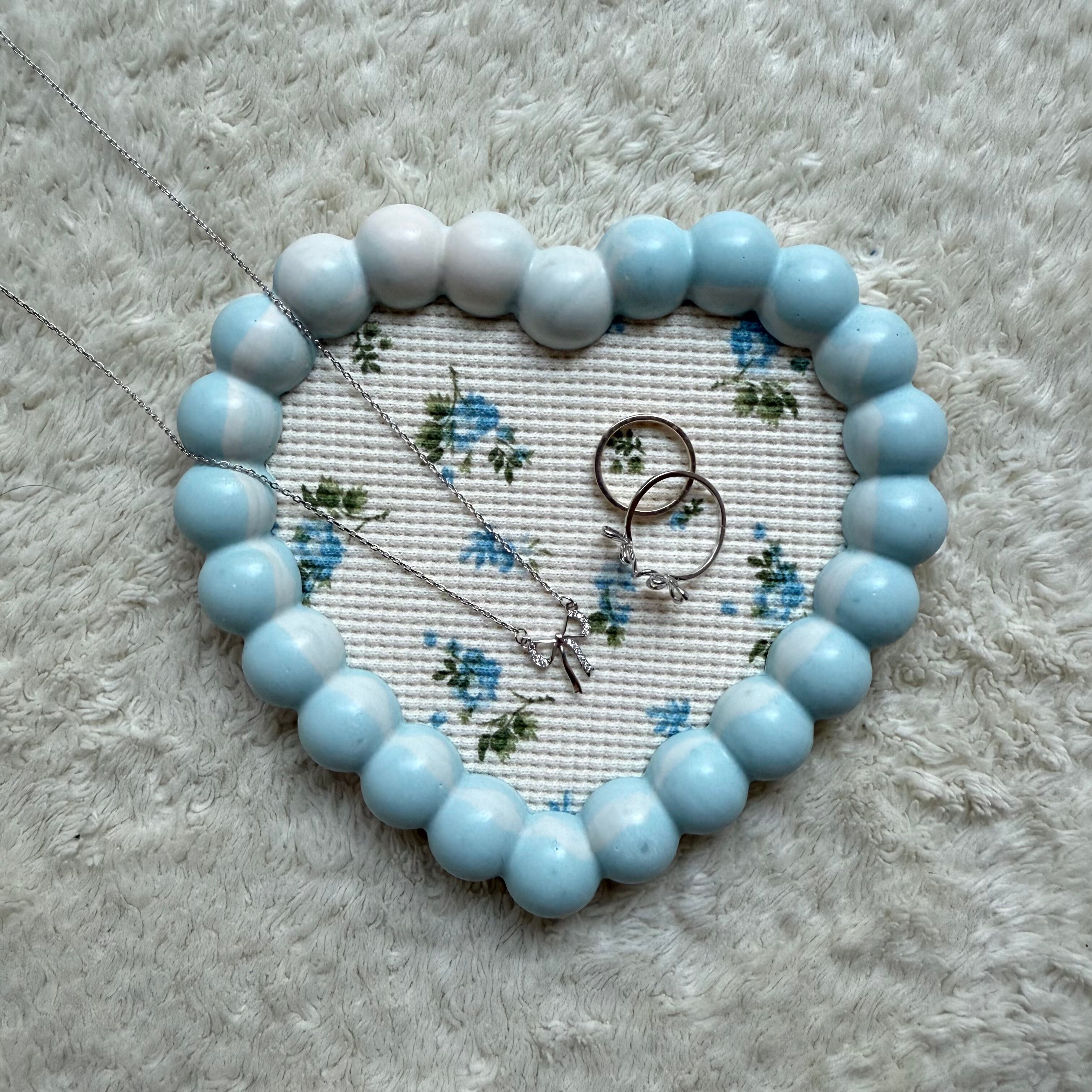 もこもこハートトレイ(ブルー×ホワイト)【D24】